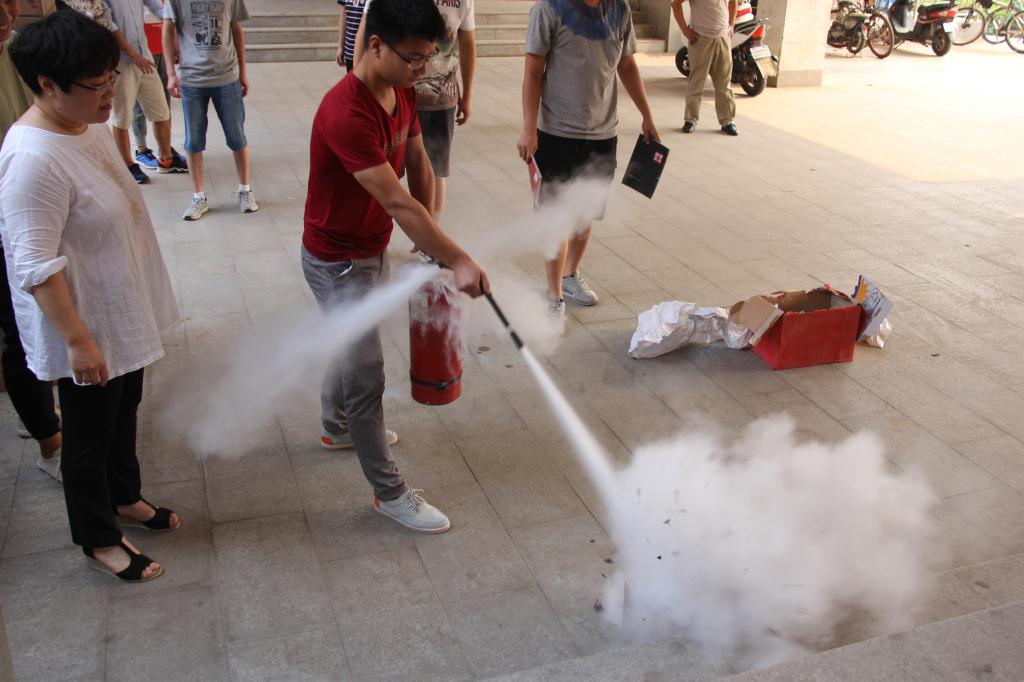 演练开始前,由法学院党总支书记段怀录为此次活动作了动员讲话,他指出消防安全工作是学校创建平安校园的重要内容之一,关系到国家财产安全和师生生命安全,号召全体师生对消防安全保持高度警惕。演练伊始,魏丽君为同学们、老师们介绍了火灾的成因,危害以及解决办法,并指导现场同学如何使用灭火器、并进行了模拟消防演练。同学们在老师的指导下认真进行演练,在场师生们认真观摩学习。活动最后在场师生纷纷表示在以后的学习和工作会多多注意,从源头避免火灾的发生,减少火灾隐患,学会救灾技巧。