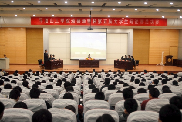 (通讯员:李婵)10月28日下午,由院团委主办、院学生会承办的平顶山工学院第五届大学生辩论赛总决赛在西校区学术报告厅举行。院团委领导、老师及西校区各系团总支负责同志和500余名大学生共同观看了比赛。总决赛评委由法律系劳动与社会保障专业教研室主任王芹萼副教授、心理健康指导中心主任李红亚副教授、图书馆办公室主任李文忠、市政工程系团总支书记姜丽娟、院团委李婵等五位老师担任。