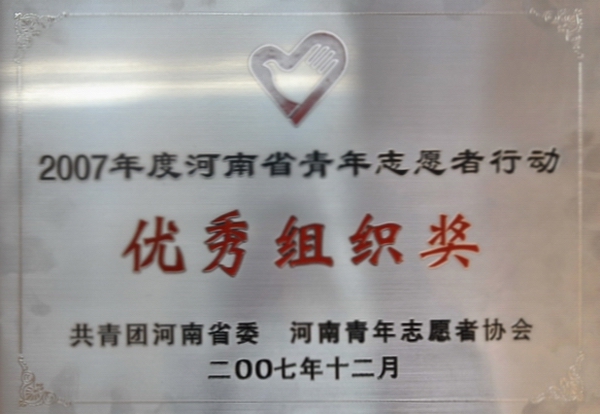 青年志愿者行动是共青团组织动员广大青年参与社会发展的有效手段,是开发青年人力资源、培养青年人才的有效途径。新形势下,院团委决心以获得省级殊荣为契机,号召全院各级团组织、青年志愿者按照 “加快科学发展、建设和谐中原”的总体要求,坚持服务大局、服务青年、服务社会,进一步推进志愿服务的各项工作,为学院各项事业又好又快的发展做出更大的贡献。