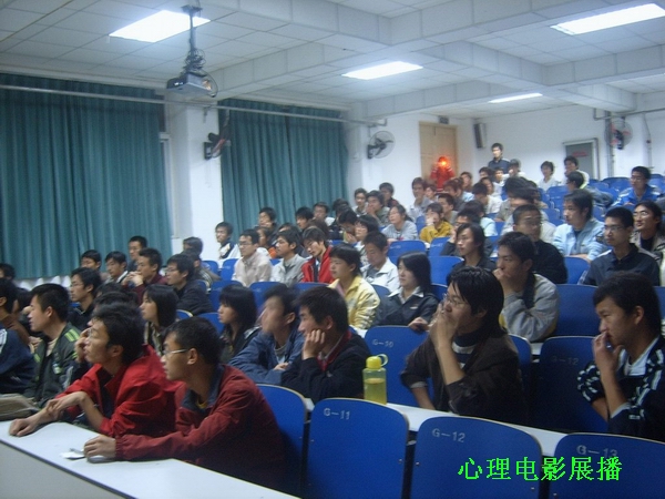 在宣传周期间,各系心理健康协会承办的大学生心理剧场每晚7:30在各院(系)多媒体教室陆续举行。其中有影片《雨人》、《心灵捕手》、《暖春》、《夕阳天使》等,还有《心理访谈》等心理节目,使我院师生在课余休闲的同时学到了心理学知识。