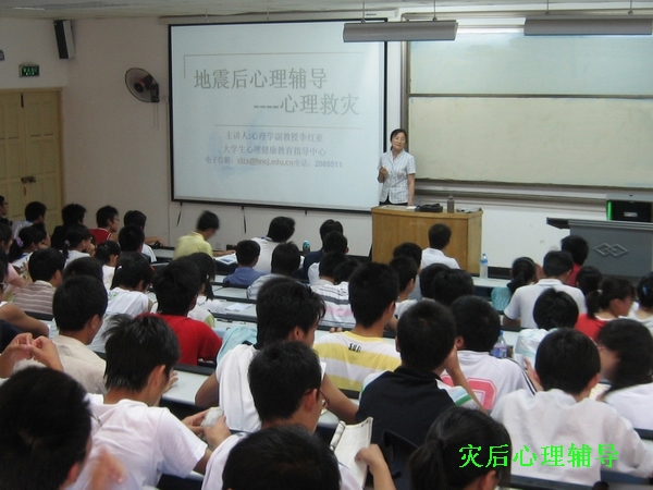为积极预防和缓解5月12日四川汶川大地震对我院在校学生产生的心理影响,稳定受灾地区学生情绪,促进灾后学生心理健康重建,5月23日下午及25日上午,学生处心理健康教育指导中心主任李红亚副教授分别在东西校区为400余名学生做了震后心理辅导。这次活动使我院学生懂得对于抗震救灾的最大贡献就是健康的生活,尽快的投入正常的学习中去,并利用所学的专业为灾区重建献计献策。