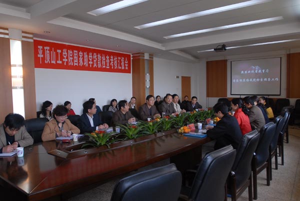 汇报会后,专家组成员对我院资助中心的办公设备、文件资料、学生档案等进行了实地考查,并分别召开了各系负责助学贷款的教师代表和参加助学贷款的学生代表座谈会。