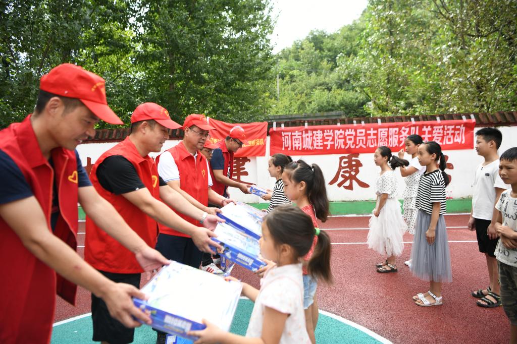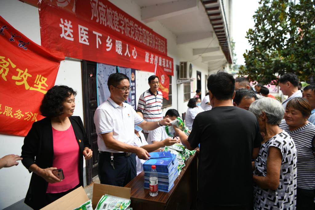 (通讯员 文枫) 8月14日,校工会副主席、校助力脱贫攻坚志愿服务队队长闫中华带领疾病防治志愿服务分队和党员志愿服务分队到新庄村分别开展了以“送医下乡暖人心服务健康献真情”、“关爱留守儿童 助力精准扶贫”为主题的助力脱贫攻坚志愿服务活动,校医院和校团委负责人、宣传部和校办工作人员及志愿服务队成员与新庄村“两委”、村小学领导及村民400余人参加了活动。