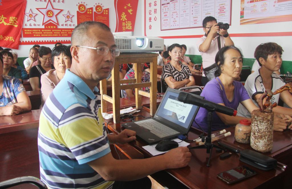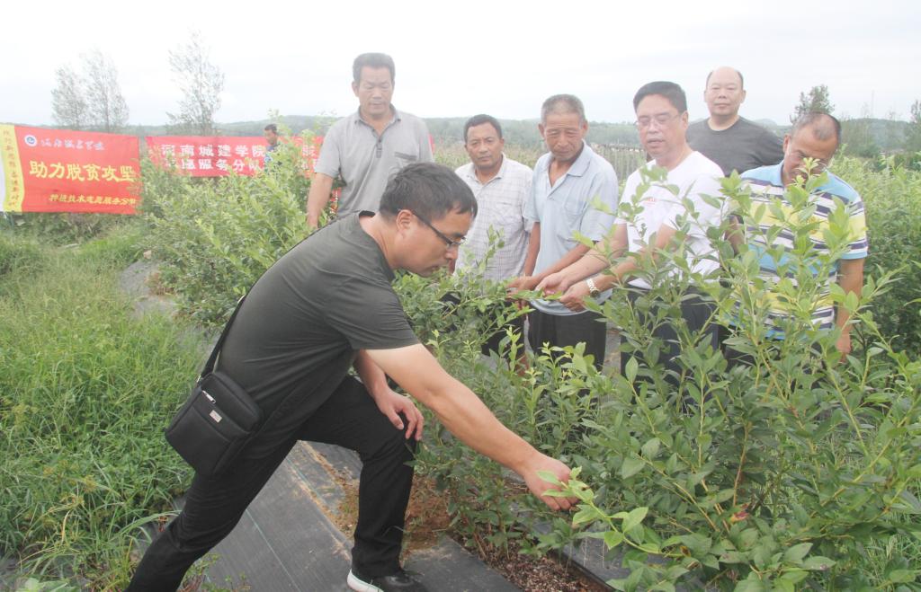 在培训会上,佘秋生博士给村民进行了食用菌种植技术培训,他就食用菌产业的发展现状及前景,搬走岭村发展食用菌产业的优势与不足,食用菌种植技术推广和建议等几个方面进行了讲解;高建民博士给村民进行了蓝莓种植技术培训,针对搬走岭村蓝莓种植成效与存在的问题进行了分析,对蓝莓种植的关键技术和注意事项进行了详细讲解。随后,助力扶贫攻坚志愿服务博士团分队又分别来到蓝莓种植基地和蘑菇种植基地,对蓝莓的田间管理、病虫害防治等进行了现场指导;对蘑菇大棚机械化建设、湿度及二氧化碳控制等进行了详细的指导。