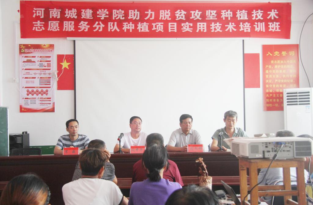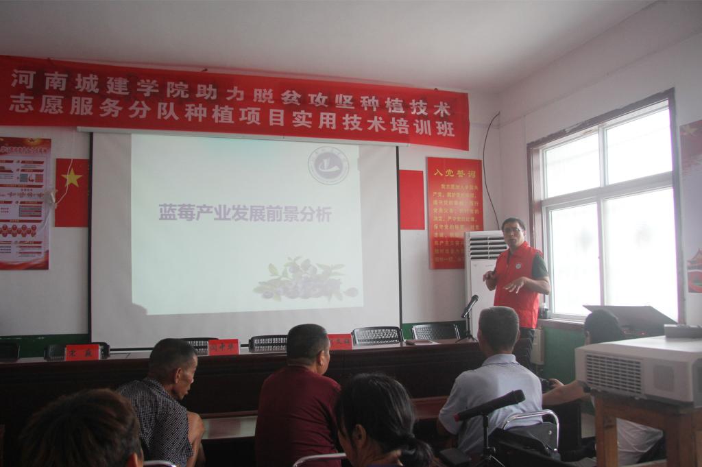 在培训会现场,闫中华向大家介绍了我校助力脱贫攻坚志愿服务行动的基本情况,明确了这次培训的目的和意义,针对搬走岭村地理气候和产业优势,组建了种植技术志愿服务分队,希望通过志愿服务队开展技能培训、经验交流和咨询服务等活动,为村民传授先进理念和技术,助力搬走岭村脱贫攻坚。