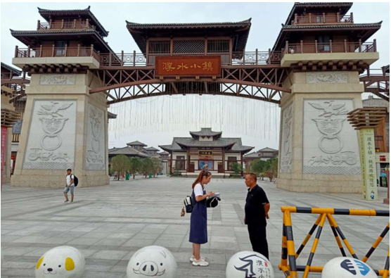 濮阳市是中华民族重要的发祥地之一,是国家历史文化名城,1987年因出土蚌塑龙形图案被称为“中华第一龙”,2012年2月被中国古都学会命名为“中华帝都”。经当地居民介绍,濮水小镇位于城南新区中心地带,北依省级金堤河县城段、南邻郑濮济高速铁路,是以金堤河国家湿地公园生态资源和丰富厚重的戏曲文化为依托,通过独特风格的文旅设施成为濮阳人民娱乐休闲必去之地,是5A级标准春秋文化古城旅游景区。不仅如此,城建学子还发现濮水小镇主入口采取了汉代风格石阙式,是整个濮阳及中原地区最大的仿古牌坊,成为濮水小镇甚至濮阳古城地标建筑之一。