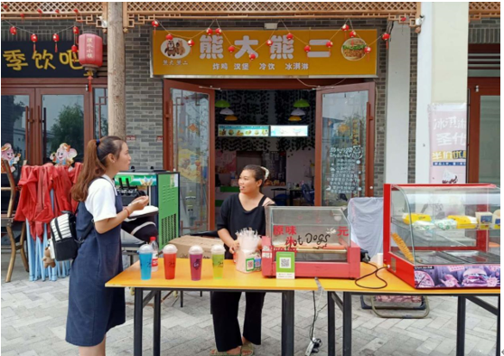 “我们小镇的两条小吃街各类美食应有尽有,玩耍地方分成人区和儿童区,文化艺术欣赏地有古玩街和大型’风雅颂戏楼’,建筑风格更是从南向北依次是秦汉、唐宋、明清等。因疫情影响客流量明显减少,以前日客流量一般在傍晚五点到夜晚十一点较多,周六周日全天客流量都比较大,收入还是可观的......”店铺老板热情地向城建队员介绍濮水小镇的发展情况。