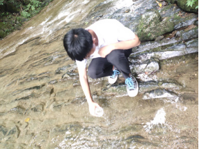小组成员对考察河流进行采样