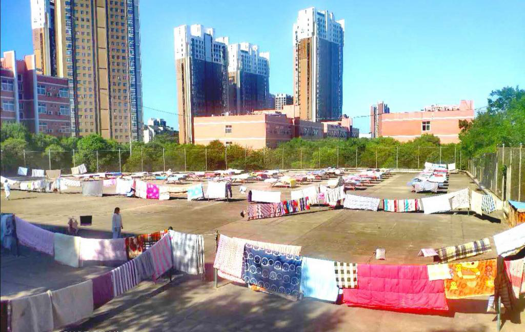 学生返校这几日正赶上“桑拿天”,物业、公寓、商贸等服务人员头顶烈日,挥汗如雨,在忙碌中迎接学生返校。