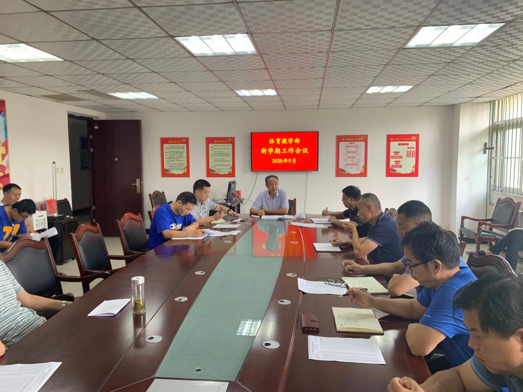 (通讯员 褚一飞)2020年9月6日上午,在体育教学部会议室召开2020—2021学年第一学期工作会议了,体育教学部全体教职工和部分兼职教师参加会议。会议由赵爱民同志主持。