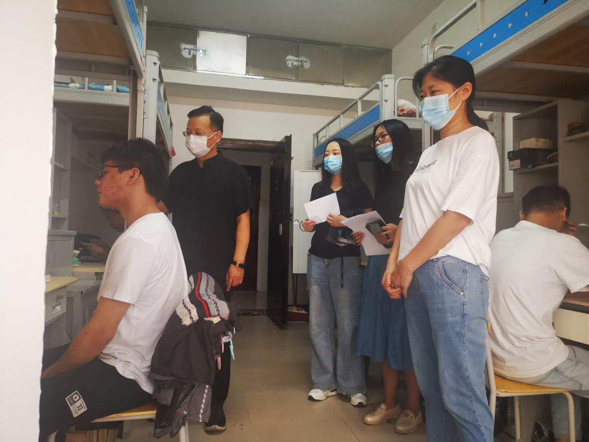 倏忽秋风至,关怀正当时!我院学工队伍时刻牵挂着返校后学生的健康以及学习、生活情况。为全面了解学生需求与思想动态,9月7日早,学院党总支书记米启超、副书记卫柳艳、团学办主任许东辉、辅导员常莉、胡小光、李方圆一行深入到我院学生宿舍,集中走访慰问我院返校学子。