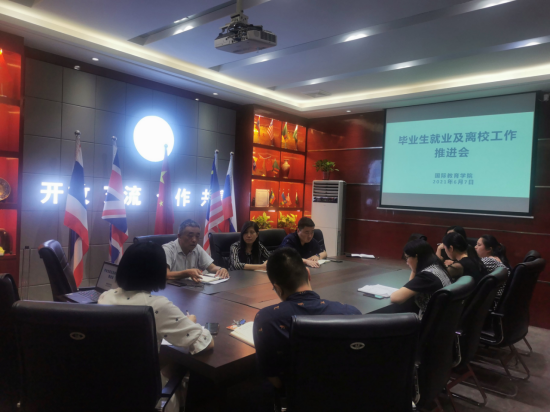 (通讯员 张锐)6月7日下午,国际教育学院在211会议室召开2021届毕业生就业及离校工作推进会。国际教育学院党委书记吕鹏飞,院长刘海燕,副院长代博君,全体辅导员及教务人员参加会议。