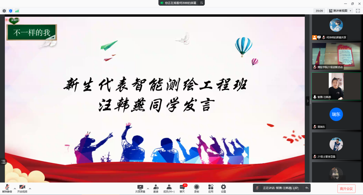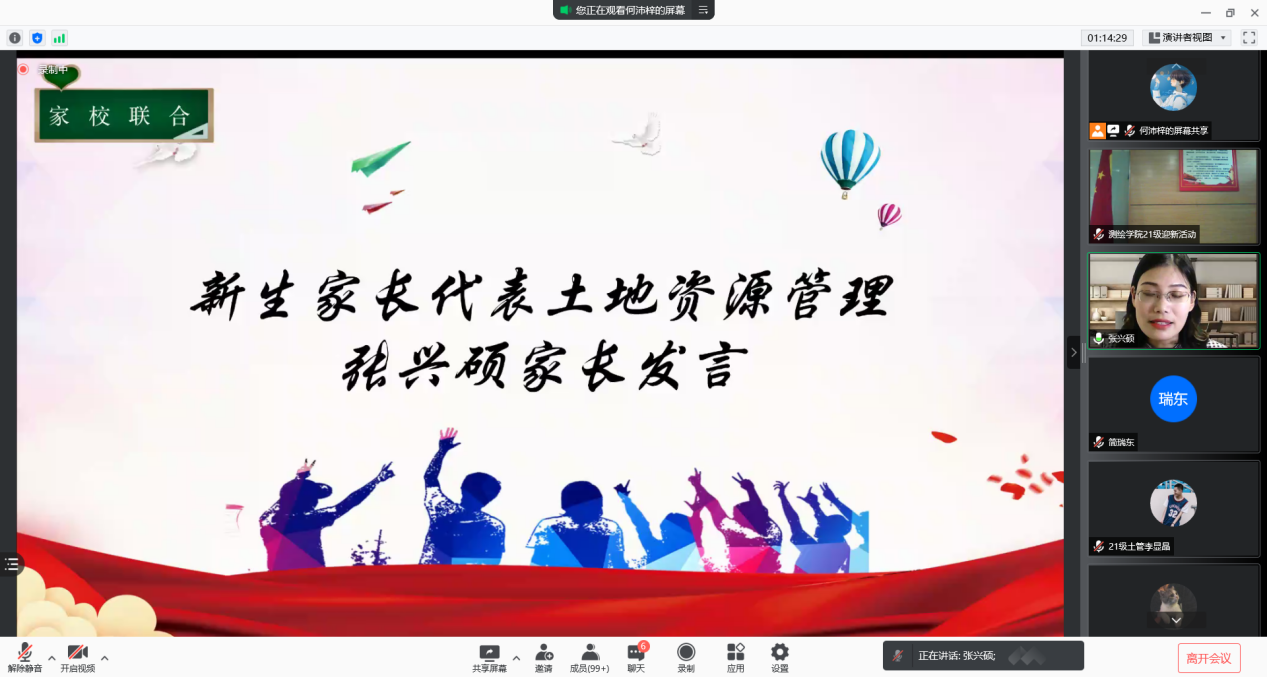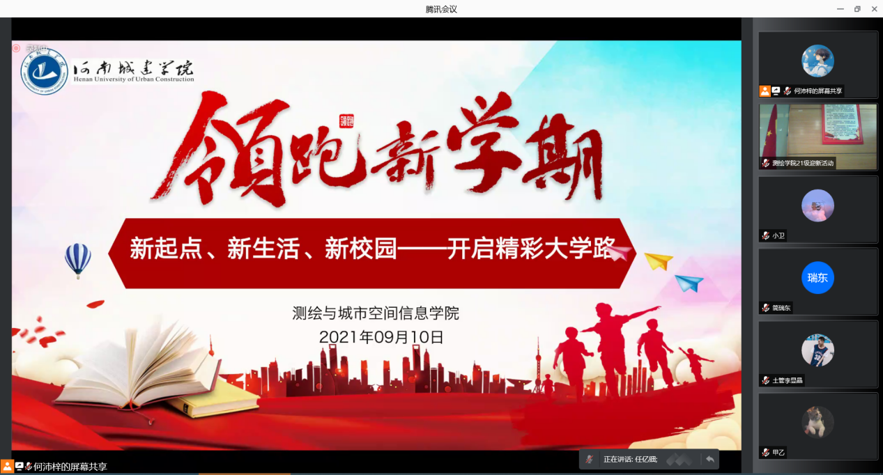 (通讯员 常莉 何沛梓)流光溢彩迎新生,心心连新齐飞扬。疫情阻挡了开学的脚步,却阻挡不了老师对新生的热情和新生对大学生活的向往。为了帮助新生更好的了解学校、学院,增强我院师生的凝聚力,进一步促进大学文化和大学精神文明建设,突出我校积极向上的精神面貌,测绘与城市空间信息学院于9月10日在腾讯会议开展了“新起点、新生活、新校园,开启精彩大学路”2021级新生线上迎新活动。测绘与城市空间信息学院班子成员、全体辅导员、2021级全体新生、教师代表、家长代表、老生代表及新生班主任等约350余人参加本次会议。
