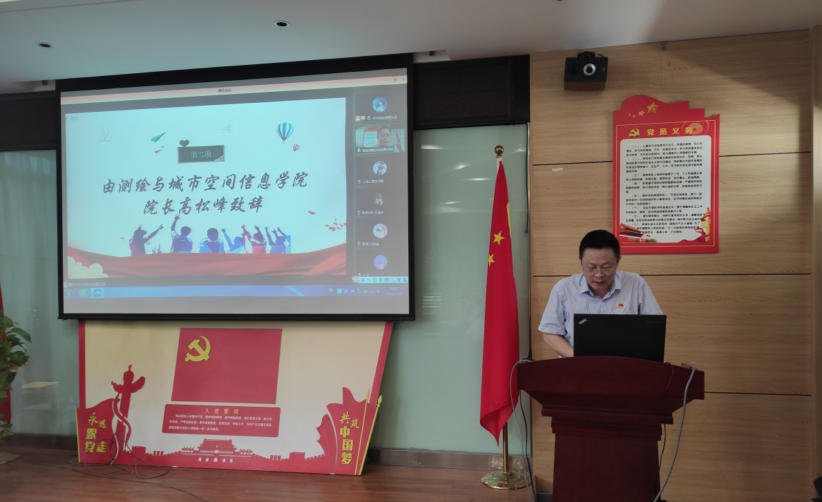 在院长致辞中,测绘与城市空间学院院长高松峰介绍了学院的基本情况,办学成绩,表达了对2021级新生的欢迎,对家长们大力支持本次活动表示感谢。