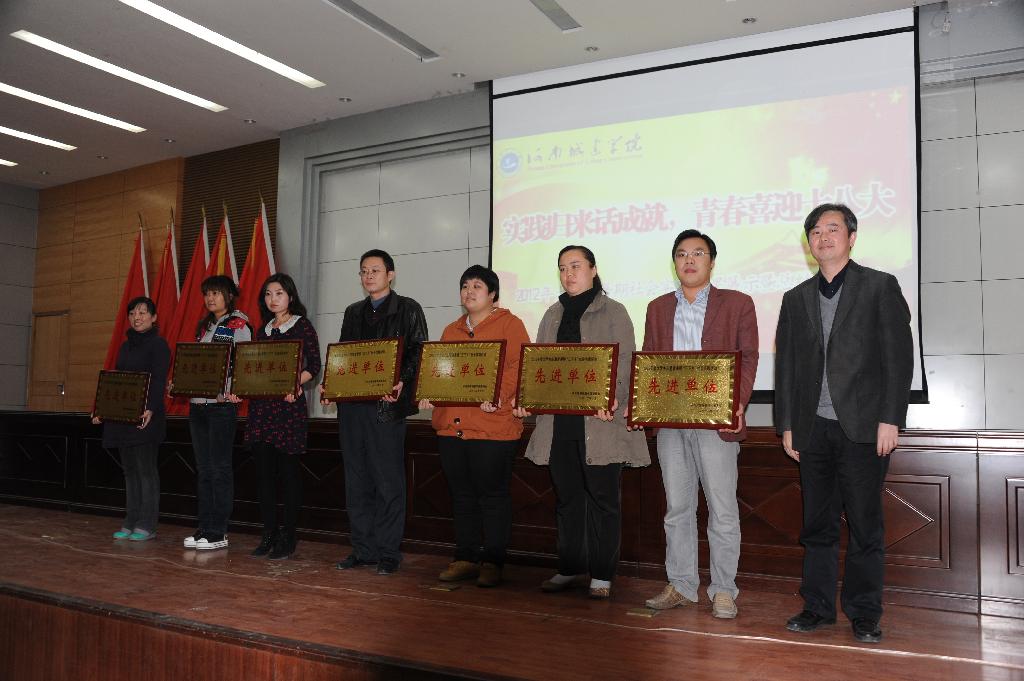 会议对我校2012年度暑期三下乡社会实践活动先进单位、先进工作者和个人进行了表彰。