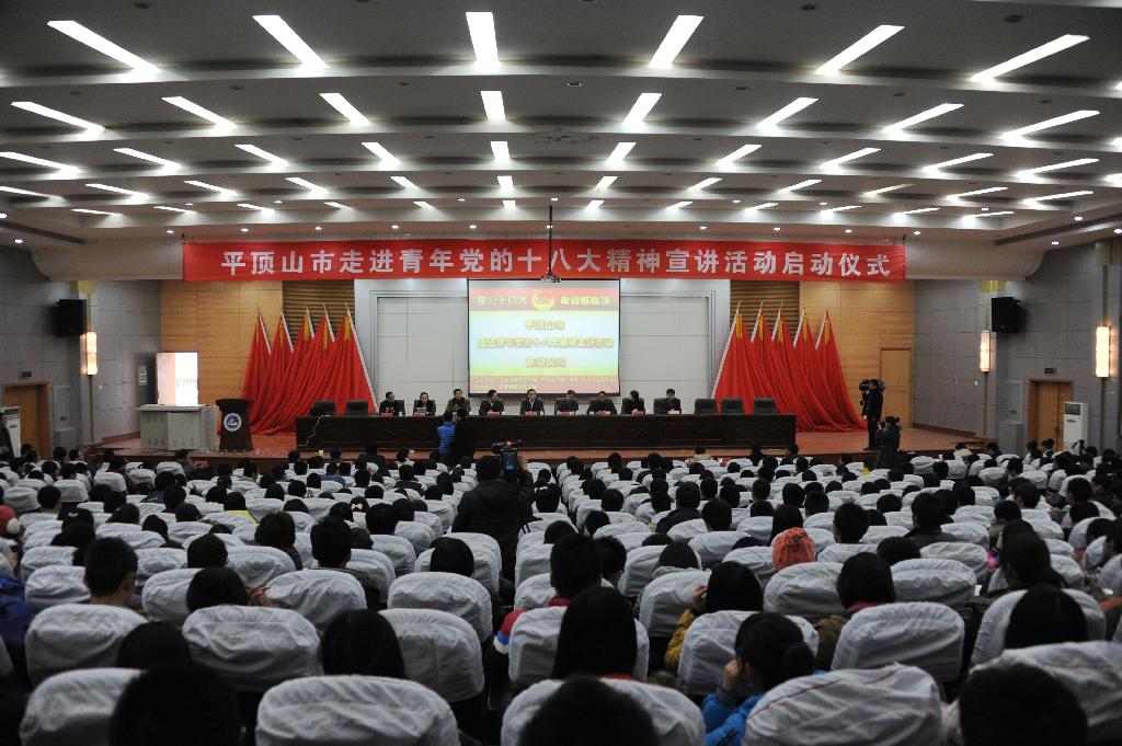 (通讯员 刘培培)12月4日,“学习十八大 青春献鹰城”平顶山市走进青年党的十八大精神宣讲活动启动仪式暨首场报告会在我校学术报告厅举行。市委常委、宣传部长唐飞出席启动仪式并讲话,党委书记李德平在启动仪式前会见了唐飞部长一行。党委副书记王召东出席启动仪式并致辞。市委宣传部副部长、社科联党组书记杨长吉,团市委书记王玉娟,社科联主席郑东丽,团市委副书记李雨帆,社科联纪检组长刘勇出席启动仪式。十八大代表白国周、市委党校专家李明担任本场报告会的主讲人。我市各区团委、各高校团委负责同志、我校各系(院)团总支书记、第四期青年马克思主义者培养工程学员共计四百余人参加了仪式。会议由郑东丽主持。