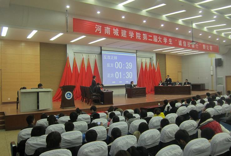 (通讯员 胡思博)11月20日晚,我校第二届大学生“诚信校园行”辩论赛决赛在学术报告厅举行。校团委、学生资助管理中心、宣传部、工会、法学院等单位相关人员,土木、市政等学院学生约500人到场观看了比赛。经过紧张激烈的比拼,土木学院代表队舌战群雄,摘得本届辩论赛桂冠,市政学院与能源学院分获第二、三名。校工会副主席、比赛评委之一周桂芳教授为冠军队颁奖,法学院副院长、比赛评委之一王芹萼副教授对比赛作精彩点评。