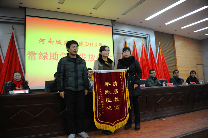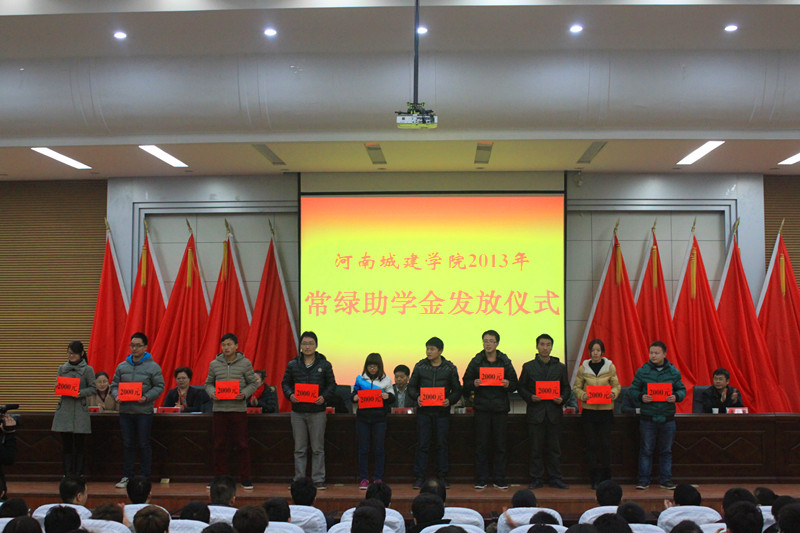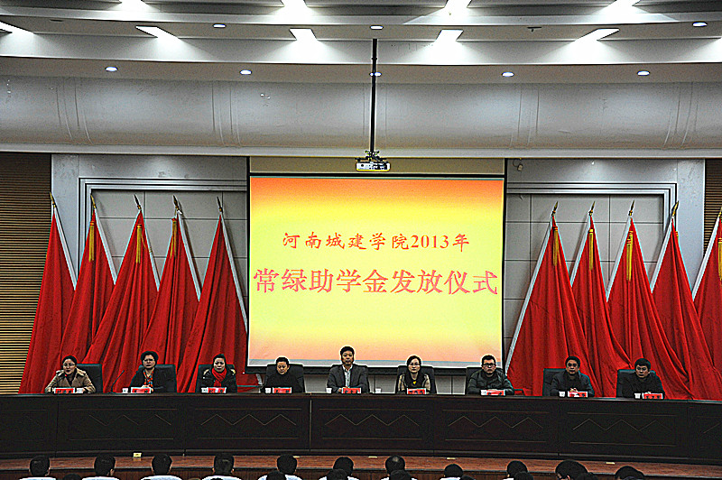 (通讯员 吴锦展)12月19日下午,我校在学术报告厅举行常绿助学金发放仪式。副校长赵金安、河南常绿集团副总经理邓伟伟出席仪式并讲话,常绿集团工会、行政部门、人事部门负责人,我校党委宣传部、招生就业处和校团委负责人,学生处和各学院主管学生工作的同志,助学金获得者及学生代表近500人参加了仪式。仪式由校团委书记刘海燕主持。