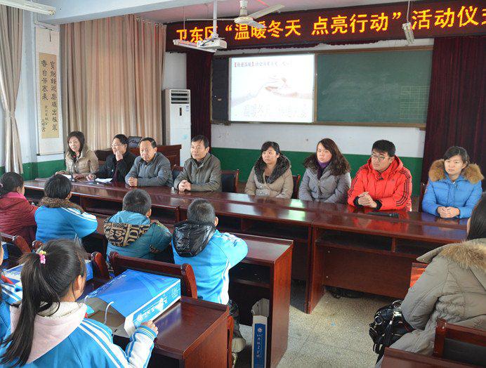 (通讯员 胡思博)12月27日上午,校团委副书记李婵、卫东区委副书记宋丕勋、卫东区副区长王三山及我校青年志愿者一行20余人前往卫东区实验小学开展了2013希望工程“温暖冬天,点亮行动”爱心捐赠活动。