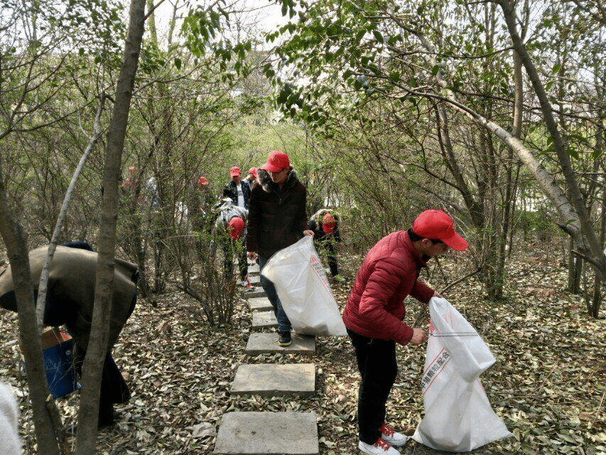 志愿者们清理林间垃圾