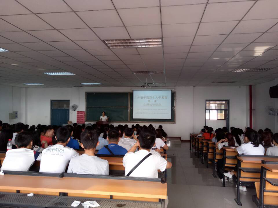 (通讯员 田果果 门海月)2016年9月12日上午,在文管校区一号教学楼528教室,大学生心理健康教育指导中心主任李红亚以“心我两相知,青春慢慢理”为主题,为外国语学院的2016级新生开展了大学生心理健康教育。外国语学院党总支书记袁晓、副书记于修涛、新生辅导员和150名大一学生共同聆听讲座。