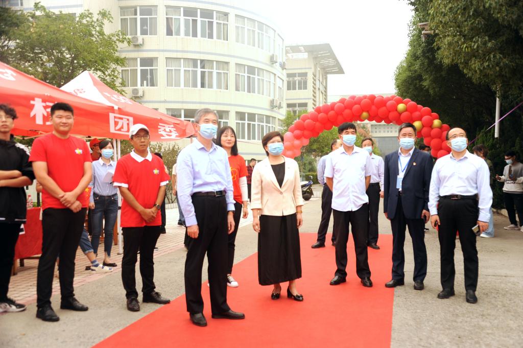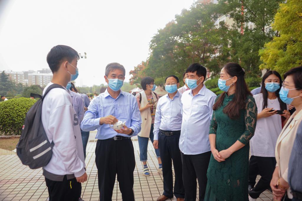 迎新当日,校领导张惠贞、王召东、许朝民、王靖、贺国营、杨风岭、刘守勇、宿金勇、周颖杰、吴晓红、陈松涛亲临现场,分两组带领相关部门负责人深入各部门服务点、各学院新生报到接待点、学生宿舍和学生餐厅实地了解迎新工作开展情况,对迎新过程中出现的问题现场协调解决,对迎新工作中各学院的特色亮点以及好的做法给予肯定、点赞,对坚守在迎新一线的辅导员老师、学生志愿者和工作人员进行慰问。在学院报到点、学生宿舍与学生餐厅,校领导与学生拉家常、合影留念,与师生一起在励志墙、签名墙上签名并题写寄语,参与独具匠心的各种迎新活动,整个校园洋溢着喜庆热烈的氛围。党委书记张惠贞前往学校门口看望新生家长,与其亲切交谈,消除家长无法进入校园陪同学生的担心。