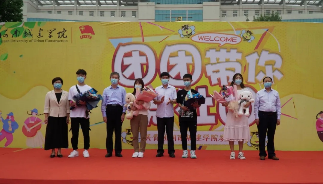 图书馆门前人声鼎沸,缤纷的舞台、鲜艳的红地毯、喜庆的气球拱门……校团委举行的“团团带你阅社团”迎新活动吸引众多师生驻足观看。校团委在此设立迎新点,为来往的师生提供茶水,并带领校内优秀文体类社团为前来报到的新同学带来精彩绝伦的表演,充分展现了我校社团对新同学的热烈欢迎。“接过校领导亲递的礼物,非常荣幸,听着大家对我生日祝福,特别感动 ”恰逢当日过18岁生日的管理学院2020级新生刘伟说到,在迎新现场,校领导为四位当日过生日的同学送上生日礼物,并送去了祝福,校长王召东勉励他们:“要珍惜校园时光,认真刻苦学习,锻炼过硬本领,在河南城建学院度过美好的青春,学有所成。”今年受疫情影响,家长不能入校,虽然在生日时身边没有了家人的陪伴,但学校给出的这份生日礼物和温情告白,给他们带来的关怀与关爱,帮助他们度过了一次特别的生日。