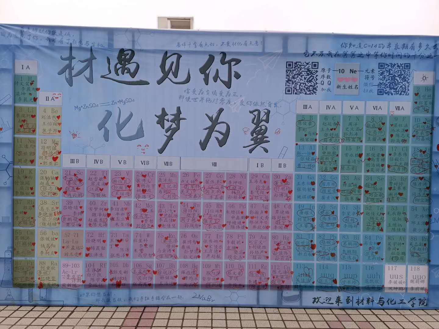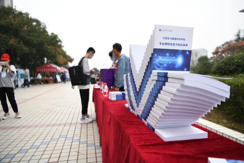 在材料与化工学院迎新点,新生正在有条不紊地按照志愿者们的耐心指导完成报到流程,人脸识别报到、领取一卡通、迎新专刊、防护手册、上交材料,学院提供了贴心的“一条龙服务”;摊位左侧摆放着的印有校园景观的陶瓷茶杯茶壶作为迎新纪念品,由材料与化工学院学生亲自制作,历经12个小时完成,饱含着学校、学院对新生的祝福与期待。该学院制作的签到墙,利用元素周期表,将今年 319名新生编成了118个化学元素,并写着与化学有关的如“如果你想当醇,那我便当酸,我们手拉手缩合在一起”等土味情话;建筑与城市规划学院的师生们则是结合自身专业特色,为方便新生熟悉学校环境,特意为新生绘制了手工校园地图,并在背面印制上建筑学院232名新生的名字,为新生送上美好的祝福,同时制作了书袋等文创产品,开设《小筑有话说》栏目在bilibili等大学生喜闻乐见的网站上同步直播迎新现场,可谓匠心独运。该学院还展示了一批中国古代建筑模型,让学生了解中国传统建筑知识与专业特色,激发同学们学习热情;此外,计算机与数据科学学院、测绘与城市空间信息学院、生命科学与工程学院向新生们展示了无人机测绘、机器人和生物发酵技术,特别是生命科学与工程学院还将传统茶文化与精准扶贫相结合,推出自创茶饮品牌,为前来报到的新生提供了一杯杯清香的茶水,缓解舟车劳顿的辛苦;外国语学院、数理学院、能源与建筑环境工程学院不约而同的制作了“寄语墙”,邀请新生同学们写下自己在大学四年生活的美好愿望,给四年后的自己一份十分珍贵的礼物。外国语学院精心制作的带有中药包的“入学锦囊”,内装三个“锦囊妙计”的卡片——从入校安排、新生辅导员联系方式、中英对照的谚语等三个方面为同学们提供了入学攻略,帮助适应大学生活,增强英语专业大学生对中国传统文化的认同与传承。